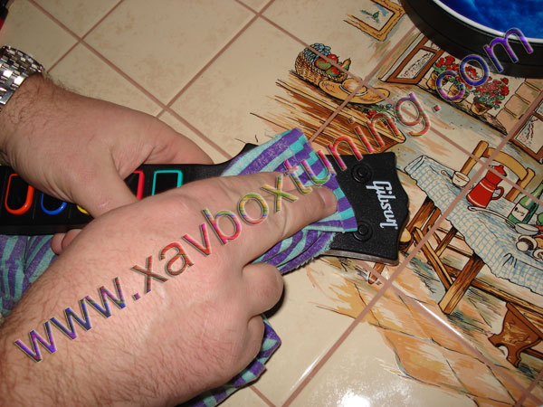On desassemble la guitare, et pour ceux qui ont déjà un auto collant Xavbox,